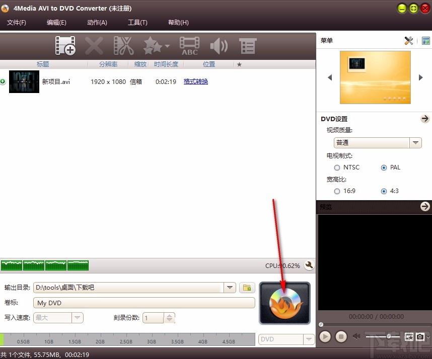 仅需三个简单的步骤即可处理AVI到DVD的刻录