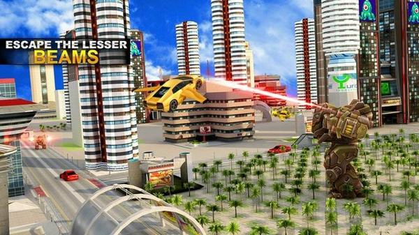 3.让你的普通车转变成真正的飞行机器人的车,像飞机一样在纽约市的天空飞行,与在线敌方机器人战争,与他们战斗并销毁所有这些飞行机器人,拯救人类,成为纽约市的英雄。